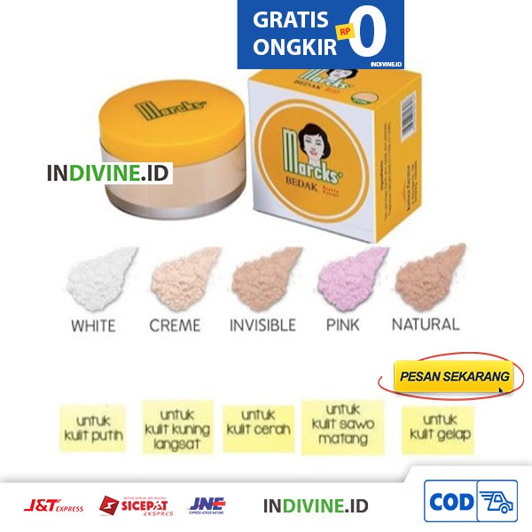 Ada lima varian shade bedak marcks' classic yang bisa kamu pilih yaitu warna rose atau pink, creme, white atau putih, invisible, dan natural . Bedak marcks warna invisible, salah satu warna bedak tabur marcks. Pilihlah bedak marcks' yang sesuai dengan warna kulit dan wujudkan impian anda memiliki kulit wajah yang sehat indah berseri dan pancarkan pesona kecantikan . Memiliki warna kulit kuning langsat serta aku pakai bedak tersebut untuk mencerahkan wajah. Hadir dalam lima pilihan warna, bedak tabur marcks ini mampu membuat.